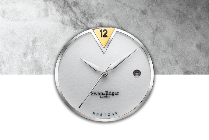 The Horizon’s 18-carat gold plated (10-microns) triangular marker at 12 is a refined tribute to the vital flight path indicators on the Battle of Britain clock.