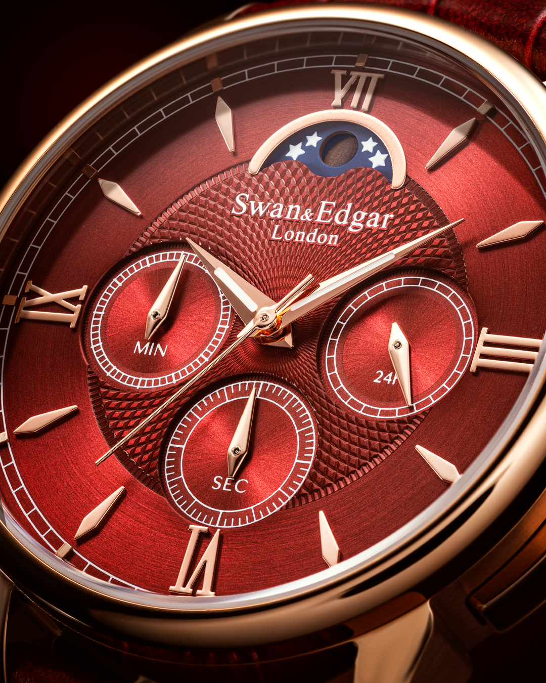 A symphony of textures brings the dial to life, Guilloché patterns add timeless intricacy, radial brushing offers a sense of precision and depth, while the sunburst finish infuses the dial with dynamic energy. Set across a two-layer construction with recessed subdials, the composition adds tangible dimension and architectural depth, creating a rich surface that shifts character beautifully with every play of light. The interplay of textures and structure not only elevates the aesthetic but also improves legibility and visual hierarchy, a reflection of our philosophy: form enhancing function.