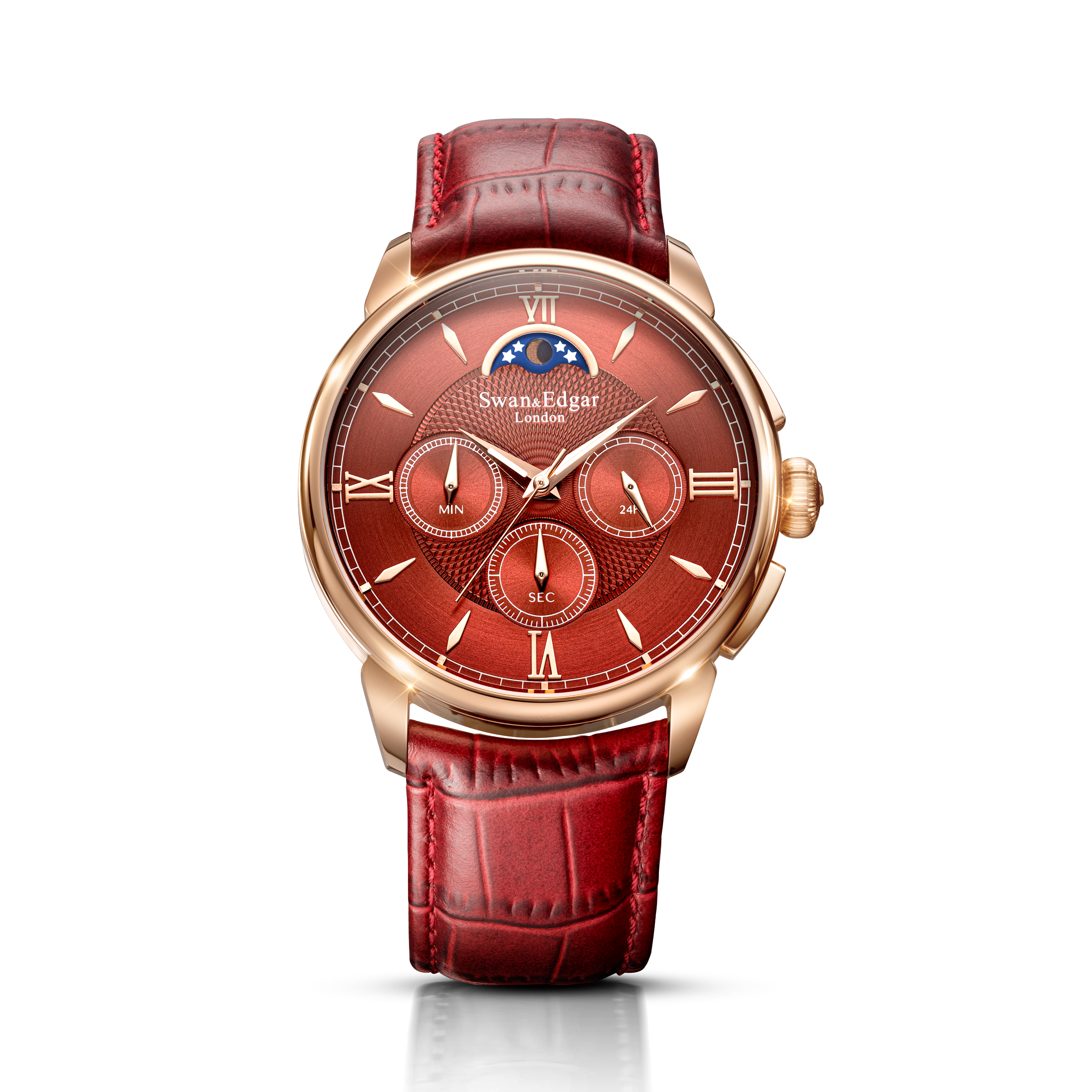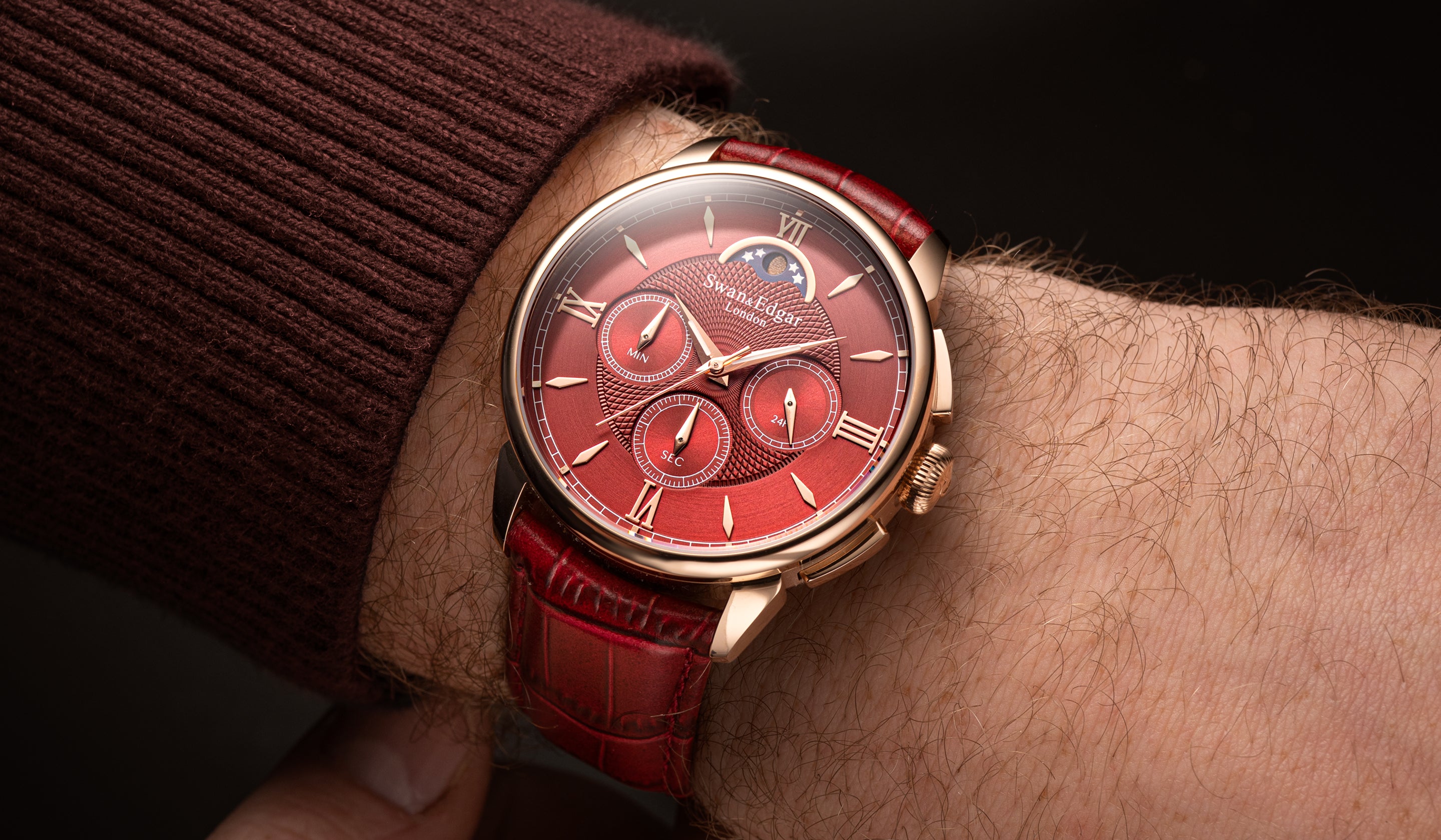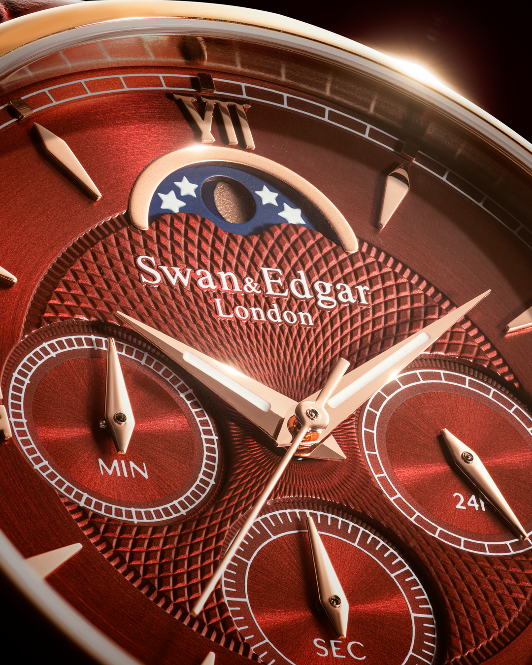 Every index is applied by hand, giving the dial dimensionality and elegance. Most distinctively, the custom typeface is inspired by the World Time Clock situated opposite the original Swan & Edgar store at Piccadilly Circus, reflecting the brand’s London heritage. A quiet but powerful tribute.